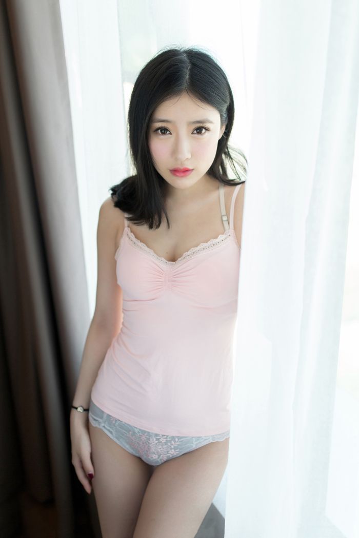 纯美人雪瑞拍写真白色肩带险滑落